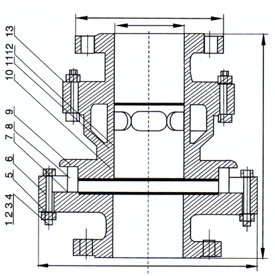 法蘭連接尺寸PN1.0MPa按GB4216.4-84標準,PN1.6MPa按GB4213.5-84標準